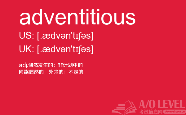 在a-level备考的过程中,想要冲刺到a-level写作的高分,相信大家都应该会知道,除了需要掌握a-level写作的一些技巧之外,优化文章中的词汇和句型也是冲刺高分的关键所在。也就是说,只有充分掌握了语法知识,才能让我们的的文章更为丰富形象。除了a-level写作,在a-level其他方面同学们也需要了解,下面课窝a/o-level考试网小编给大家带来a-level单词adventitious的介绍。如果您想了解a水准考试范围,一年读完alevel,高中alevel考试,alevel官方报名等关于a-level考试的相关资讯,请继续浏览并关注课窝a/o-level考试网。