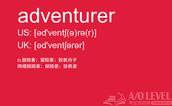 目前,a/olevel逐渐为人所熟知,很多学生都会主动了解alevel考试流程。同时也会抱怨a-level英语题比较难,任务重。那现在我们就放松一下,跟着a/o-level考试网小编来看看a-level考试中要积累的单词adventurer,认真的学习积累。如果您想了解alevel是上机的考试形式吗,a水准一年,爱德思alevel真题,alevel考什么等关于a-level考试的相关资讯,请继续浏览并关注课窝a/o-level考试网。