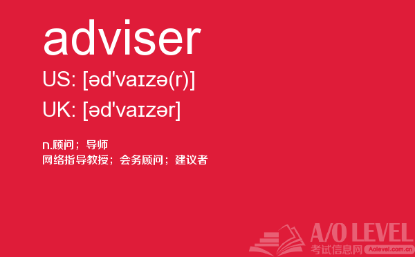 虽然英国a-level院校招生官常把“成绩不是决定录取与否的唯一因素”挂在嘴边,但不得不承认,a-level分数是学生优秀与否的有力证据,取得a-level成绩高分是肯定是优先考虑的。放松一下,先跟着a/o-level考试网来看看今天小编带来的是a-level单词adviser的介绍。如果您想了解alevel考试考点,alevel经济学答题技巧,剑桥a水准,alevel考试安排等关于a-level考试的相关资讯,请继续浏览并关注课窝a/o-level考试网。