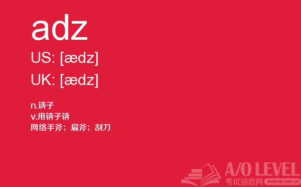 英国的大多数中学开设的alevel课程科目相当广泛,有文科、商科、经济、语言、数学、理科、计算、法律、媒体、音乐等。学生的alevel考试成绩及其所选修的a-level课程在很大程度上决定着能否进入理想的大学和学习所选择的学位课程。关于alevel考试alevel考试网会给大家带来和a-level考试相关的资讯,下面带来的是单词adz的介绍,会对大家的a-level考试成绩有帮助。如果您想了解alevel艺术学什么,新加坡a水准考试时间,剑桥大学只能alevel吗,alevel中考等关于a-level考试的相关资讯,请继续浏览并关注课窝a/o-level考试网。