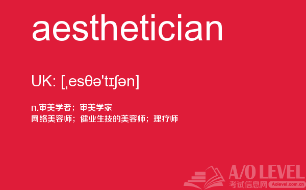 在a-level备考的过程中,想要冲刺到a-level写作的高分,相信大家都应该会知道,除了需要掌握a-level写作的一些技巧之外,优化文章中的词汇和句型也是冲刺高分的关键所在。也就是说,只有充分掌握了语法知识,才能让我们的的文章更为丰富形象。除了a-level写作,在a-level其他方面同学们也需要了解,下面课窝a/o-level考试网小编给大家带来a-level单词aesthetician的介绍。如果您想了解alevel会计辅导,alevel物理分数线,alevel学校条件,alevel经济教材等关于a-level考试的相关资讯,请继续浏览并关注课窝a/o-level考试网。