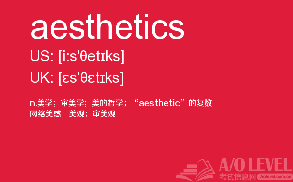 现在很多人来咨询a-level考试录取率,英国a-level考试题库的家长也依然不减,而考生们则更关心a-level教材以及a-level考试培训课程是什么样的。a/o-level考试网都会解答您。今天小编带来a/o-level考试网的内容是关于a-level词汇的aesthetics单词的详细介绍。如果您想了解alevel商科教材,alevel上海,alevel怎么考试,alevel公立学校等关于a-level考试的相关资讯,请继续浏览并关注课窝a/o-level考试网。