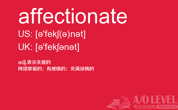 现在申请英国院校的中国孩子非常多,几乎每一个学生都在为一种叫做英国a-level的考试而努力着。a/o-level考试网老师为大家解析a-level考试重难点单词affectionate,大家认真学习,会有帮助。如果您想了解alevel经济essay,alevel成绩有效期,alevel进阶数学分数段,什么是alevel课程等关于a-level考试的相关资讯,请继续浏览并关注课窝a/o-level考试网。