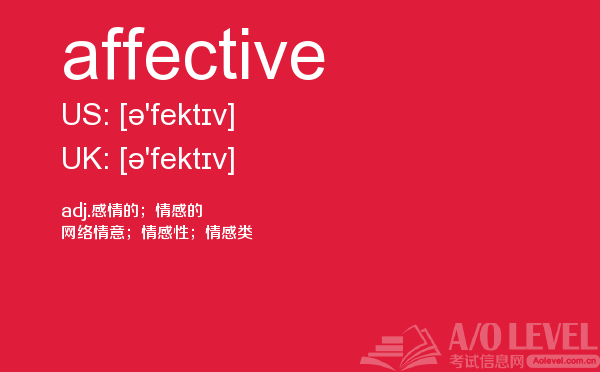 对于a-level考试,我们一再强调要加强a-level考试真题实战,多做英国a-level考试真题。放松一下,跟着a/o-level考试网来积累一下a-level考试中你会用到的单词affective,对你的a-level考试会有很大的帮助。如果您想了解alevel生物难度,英国alevel排名,alevel考试考点,申请英国alevel高中等关于a-level考试的相关资讯,请继续浏览并关注课窝a/o-level考试网。