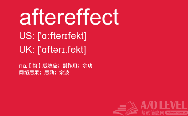 英国a-level入学考试的机会真的很少,每年就5-6月和10-11月两场考试。所以千万别因为不必要的原因,影响了a-level入学考试。为了让大家更好的在英国留学,a/o-level考试网会为大家带来a-level考试相关的资讯,一起来看看a/o-level考试网今天带来的词汇aftereffect的解析。如果您想了解澳大利亚alevel,alevel物理难吗,在线alevel培训,alevel报名网站等关于a-level考试的相关资讯,请继续浏览并关注课窝a/o-level考试网。
