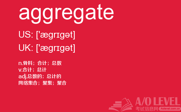 a-level课程证书被几乎所有英语授课的大学作为招收新生的入学标准。 在中国开设a-level课程旨在为中国学生提供进入国外大学的有效途径,具体目标为:培养在国内初高中成绩优秀的学生进入世界顶尖大学;培养在国内初高中成绩中等的学生进入世界一流大学;培养在国内初高中成绩一般的学生考取适合自己的大学。今天alevel考试网小编给大家详细解析a-level考试单词aggregate。如果您想了解国内alevel培训,alevel历年考试,alevel学校考试难度,alevel报考等关于a-level考试的相关资讯,请继续浏览并关注课窝a/o-level考试网。