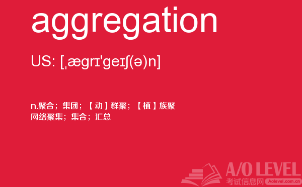 对于a-level考试,我们一再强调要加强a-level考试真题实战,多做英国a-level考试真题。放松一下,跟着a/o-level考试网来积累一下a-level考试中你会用到的单词aggregation,对你的a-level考试会有很大的帮助。如果您想了解alevel社会学,alevel进阶数学内容,alevel考试备考,alevel数学怎么选等关于a-level考试的相关资讯,请继续浏览并关注课窝a/o-level考试网。