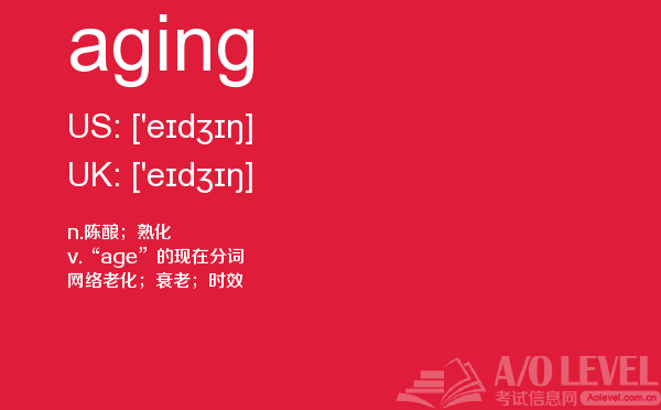 目前,a/olevel逐渐为人所熟知,很多学生都会主动了解alevel考试流程。同时也会抱怨a-level英语题比较难,任务重。那现在我们就放松一下,跟着a/o-level考试网小编来看看a-level考试中要积累的单词aging,认真的学习积累。如果您想了解alevel词汇量测试,alevel课程设置,alevel考试在中国,alevel数学评分标准等关于a-level考试的相关资讯,请继续浏览并关注课窝a/o-level考试网。