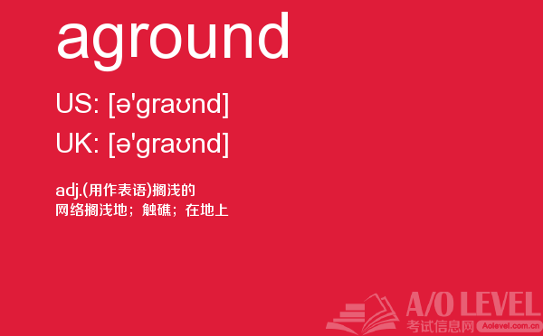 虽然英国a-level院校招生官常把“成绩不是决定录取与否的唯一因素”挂在嘴边,但不得不承认,a-level分数是学生优秀与否的有力证据,取得a-level成绩高分是肯定是优先考虑的。放松一下,先跟着a/o-level考试网来看看今天小编带来的是a-level单词aground的介绍。如果您想了解alevel报考美国,alevel答案网站,上海alevel课程,在线alevel培训等关于a-level考试的相关资讯,请继续浏览并关注课窝a/o-level考试网。