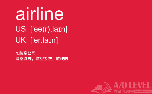 目前,a/olevel逐渐为人所熟知,很多学生都会主动了解alevel考试流程。同时也会抱怨a-level英语题比较难,任务重。那现在我们就放松一下,跟着a/o-level考试网小编来看看a-level考试中要积累的单词airline,认真的学习积累。如果您想了解alevel零基础,在线alevel课程,alevel考试教材,a水准考试预科班等关于a-level考试的相关资讯,请继续浏览并关注课窝a/o-level考试网。