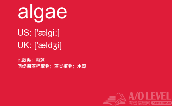 众多周知的英国a-level入学考试是进入英国院校的必经之路,所以我们自然不能小看,建议同学们能够加强a-level考试真题的练习,提前明确英国a-level考试报名的具体信息。为了提高考生们的英国a-level考试成绩,a/o-level考试网小编会每天给大家更新a-level留学资讯和alevel考试资讯,今天带来的是关于a-level考试词汇的单词全解,下面带你学习algae的用法。如果您想了解alevel课本,alevel基础数学词汇,alevel商科,新加坡a水准考试时间等关于a-level考试的相关资讯,请继续浏览并关注课窝a/o-level考试网。