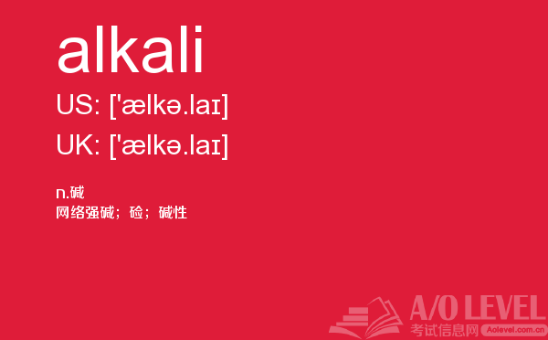 今天课窝a/o-level考试网小编给大家带来alevel考试至关重要的内容a-level单词alkali的详细介绍。希望大家能够认真的阅读,在备考a-level中会用到,关于a-level考试时间,alevel考试费用等相关问题,可以关注课窝a/o-level考试网。如果您想了解alevel作用,alevel考试中心英国,alevel咨询中心,香港大学alevel成绩申请等关于a-level考试的相关资讯,请继续浏览并关注课窝a/o-level考试网。