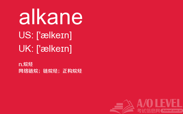英国a-level入学考试的机会真的很少,每年就5-6月和10-11月两场考试。所以千万别因为不必要的原因,影响了a-level入学考试。为了让大家更好的在英国留学,a/o-level考试网会为大家带来a-level考试相关的资讯,一起来看看a/o-level考试网今天带来的词汇alkane的解析。如果您想了解如何成为alevel老师,alevel补习,alevel数学教材有几本书,alevel数学评分标准等关于a-level考试的相关资讯,请继续浏览并关注课窝a/o-level考试网。
