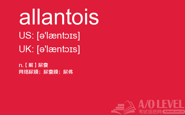 a-level课程证书被几乎所有英语授课的大学作为招收新生的入学标准。 在中国开设a-level课程旨在为中国学生提供进入国外大学的有效途径,具体目标为:培养在国内初高中成绩优秀的学生进入世界顶尖大学;培养在国内初高中成绩中等的学生进入世界一流大学;培养在国内初高中成绩一般的学生考取适合自己的大学。今天alevel考试网小编给大家详细解析a-level考试单词allantois。如果您想了解中国alevel成绩申请国外名校,alevel数学名词,英国alevel成绩只有c,alevel申请条件等关于a-level考试的相关资讯,请继续浏览并关注课窝a/o-level考试网。