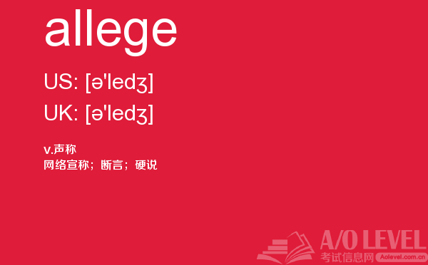 a-level(general certificate of education advanced level ),英国高中课程,是英国全民课程体系,是英国普通中等教育证书考试高级水平课程,也是英国学生的大学入学考试课程。今天alevel考试网小编给大家带来的alevel考试单词allege的详细介绍。希望大家能够认真的阅读。如果您想了解alevel物理真题,如何成为alevel老师,英国读alevel,为什么要考alevel课程等关于a-level考试的相关资讯,请继续浏览并关注课窝a/o-level考试网。