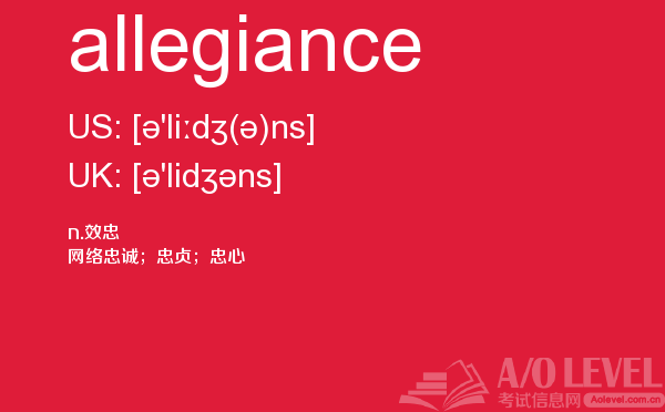 英国、加拿大、爱尔兰、澳大利亚、新西兰、新加坡等英语国家没有统一的大学入学标准,虽然它们都认可a-level证书,但是各所大学、各个专业对学生学过哪几门a-level课程以及成绩都有不同的要求。所以怎样选择课程并没有一个唯一的答案。对于如何选课的问题要根据具体情况而定。这些在你的a-level考试中都不是重要的,重要的是a-level成绩,a-level成绩取决于a-level词汇量,那么今天小编给大家带来a-level考试重点词汇allegiance的全面解析。如果您想了解alevel美国,alevel经济分类,alevel咨询中心,a水准考试预科班等关于a-level考试的相关资讯,请继续浏览并关注课窝a/o-level考试网。