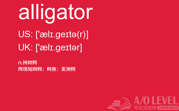 a- level课程一般在中国开设数学、进阶数学(或称高等数学)、物理、计算机学、会计学、商业学、经济学等课程供学生选择。那么关于alevel考生应该选哪些alevel课程呢?以后会给大家详细介绍,今天a/o-level考试网主要给大家全面介绍a-level词汇中的alligator单词。如果您想了解alevel辅导上海,英国alevel课程是什么,在线alevel培训机构,alevel简介等关于a-level考试的相关资讯,请继续浏览并关注课窝a/o-level考试网。