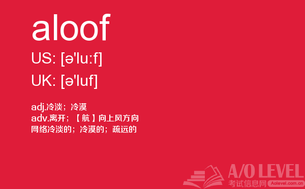 随着英国留学申请竞争的白热化,a-level成绩在学生个人简历中扮演的“入场券”角色,变得越来越重要。然而,在你参加a-level考试培训班前,你首先要对a-level考试有着一定的了解,一起跟着a/o-level考试网来看看小编今天带来a-level单词aloof的详细介绍。如果您想了解alevel考试机经,alevel真题试卷,alevel都有什么课程,alevel课程多久等关于a-level考试的相关资讯,请继续浏览并关注课窝a/o-level考试网。