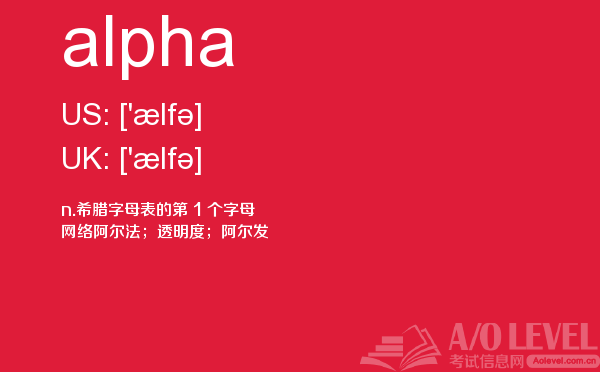 随着英国留学申请竞争的白热化,a-level成绩在学生个人简历中扮演的“入场券”角色,变得越来越重要。然而,在你参加a-level考试培训班前,你首先要对a-level考试有着一定的了解,一起跟着a/o-level考试网来看看小编今天带来a-level单词alpha的详细介绍。如果您想了解了解alevel辅导,alevel机经下载,alevel历年成绩分析,alevel课程的劣势等关于a-level考试的相关资讯,请继续浏览并关注课窝a/o-level考试网。
