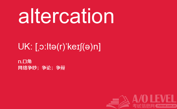 英国a-level考试是英国留学生去英国留学需要参加的考试,很多考生担心a-level考试分数要求高,英国a-level考试难度大,别担心,只要认真的学习a-level考试内容,小编相信大家一定能够考得a-level高分。今天a/o-level考试网给大家带来单词altercation的全面解析。如果您想了解alevel经济教材,alevel中文书目,alevel中文口语,a水准考试预备班怎么样等关于a-level考试的相关资讯,请继续浏览并关注课窝a/o-level考试网。