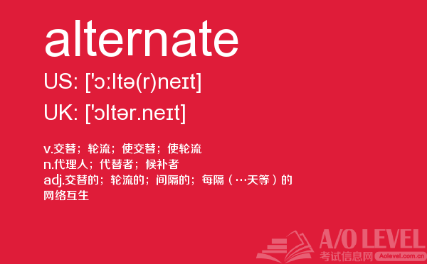 a-level课程包含70多门供学生选择,一般学生选择3至4门来学,中国学生在数学学科上有很大的优势,一般学生都会选择基础数学。学生选择课程时,一般要考虑现在自己的优势科目和将来的发展方向,即你想选择哪个大学、什么专业,从而根据他们的要求有的放矢地选课。关于alevel选课后续会详细介绍,下面带来a-level考试词汇alternate的详细介绍。如果您想了解中国alevel就读人数,alevel考试卷,alevel辅导班,alevel中考等关于a-level考试的相关资讯,请继续浏览并关注课窝a/o-level考试网。