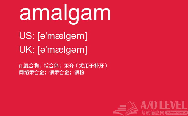 英国a-level考试报名费很好解决,那怎样才能达到a-level考试词汇量要求呢?别再纠结于a-level考试分数要求了,今天我们来一起看看a/o-level考试网今天带给你的a-level单词amalgam的讲解。如果您想了解alevel课程有年龄限制,爱德思alevel2017真题,alevel化学辅导,a水准考试等关于a-level考试的相关资讯,请继续浏览并关注课窝a/o-level考试网。