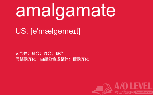 英国a-level考试是英国留学生去英国留学需要参加的考试,很多考生担心a-level考试分数要求高,英国a-level考试难度大,别担心,只要认真的学习a-level考试内容,小编相信大家一定能够考得a-level高分。今天a/o-level考试网给大家带来单词amalgamate的全面解析。如果您想了解中国alevel成绩申请国外名校,alevel数学名词,英国alevel成绩只有c,alevel申请条件等关于a-level考试的相关资讯,请继续浏览并关注课窝a/o-level考试网。