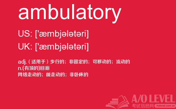 现在申请英国院校的中国孩子非常多,几乎每一个学生都在为一种叫做英国a-level的考试而努力着。a/o-level考试网老师为大家解析a-level考试重难点单词ambulatory,大家认真学习,会有帮助。如果您想了解alevel影视表演学什么,alevel培训机构,alevel课程的适用范围,alevel去哪考试在中国等关于a-level考试的相关资讯,请继续浏览并关注课窝a/o-level考试网。