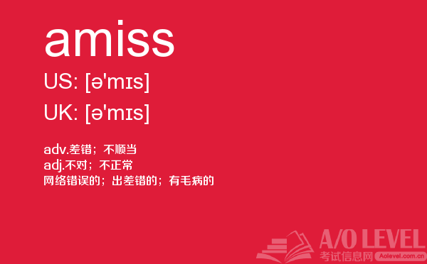 英国留学考试a-level考试考什么?a-level考试题型一定要注意积累和总结。课窝a/o-level考试网小编每天会给大家带来a-level考试的相关资讯,今天带来a-level单词amiss的解析,希望大家认真的积累a-level考试词汇。如果您想了解alevel,alevel课程,alevel考试局,alevel数学教材等关于a-level考试的相关资讯,请继续浏览并关注课窝a/o-level考试网。