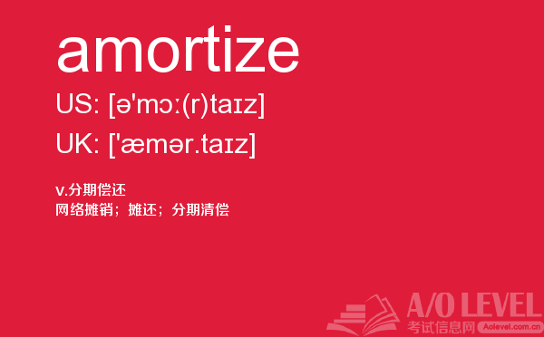 随著学生的素质提升,各大a-level课程培训班的师资和英国a-level题库也不断的完善,近年来学生考出来a-level分数也不断上涨。但是去英国留学,对英国留学资讯和英国的a-level考试资讯都是需要了解的,下面一起跟着a/o-level考试网来看看a-level词汇之amortize的详细介绍。如果您想了解新加坡a水准预科,查询alevel考试报名信息2018,alevel化学提纲,alevel考试介绍等关于a-level考试的相关资讯,请继续浏览并关注课窝a/o-level考试网。