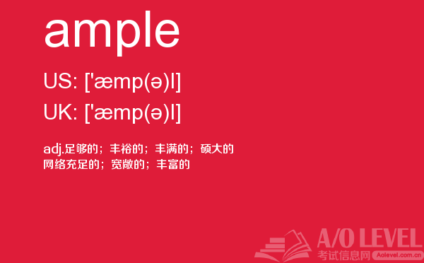 英国a-level考试是英国留学生去英国留学需要参加的考试,很多考生担心a-level考试分数要求高,英国a-level考试难度大,别担心,只要认真的学习a-level考试内容,小编相信大家一定能够考得a-level高分。今天a/o-level考试网给大家带来单词ample的全面解析。如果您想了解alevel数学公式表,alevel申请,alevel学校,英国alevel学校排名等关于a-level考试的相关资讯,请继续浏览并关注课窝a/o-level考试网。