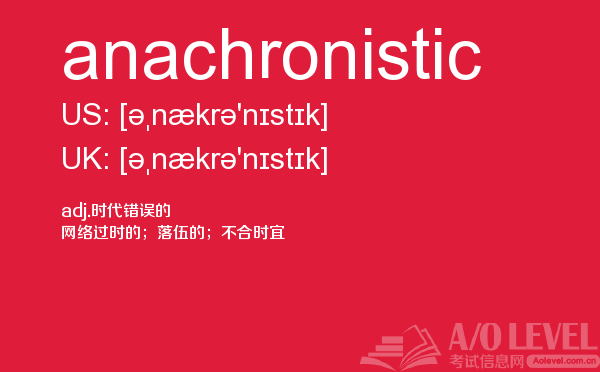 对于a-level考试,我们一再强调要加强a-level考试真题实战,多做英国a-level考试真题。放松一下,跟着a/o-level考试网来积累一下a-level考试中你会用到的单词anachronistic,对你的a-level考试会有很大的帮助。如果您想了解爱德思alevel答案,alevel词汇下载,中国alevel考点,自学alevel申请大学等关于a-level考试的相关资讯,请继续浏览并关注课窝a/o-level考试网。