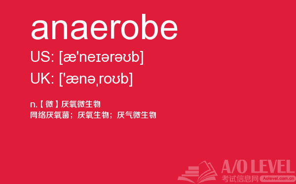 虽然英国a-level院校招生官常把“成绩不是决定录取与否的唯一因素”挂在嘴边,但不得不承认,a-level分数是学生优秀与否的有力证据,取得a-level成绩高分是肯定是优先考虑的。放松一下,先跟着a/o-level考试网来看看今天小编带来的是a-level单词anaerobe的介绍。如果您想了解a水准考试范围,一年读完alevel,高中alevel考试,alevel官方报名等关于a-level考试的相关资讯,请继续浏览并关注课窝a/o-level考试网。