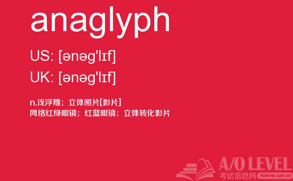 英国a-level考试报名费很好解决,那怎样才能达到a-level考试词汇量要求呢?别再纠结于a-level考试分数要求了,今天我们来一起看看a/o-level考试网今天带给你的a-level单词anaglyph的讲解。如果您想了解alevel课程有年龄限制,爱德思alevel2017真题,alevel化学辅导,a水准考试等关于a-level考试的相关资讯,请继续浏览并关注课窝a/o-level考试网。