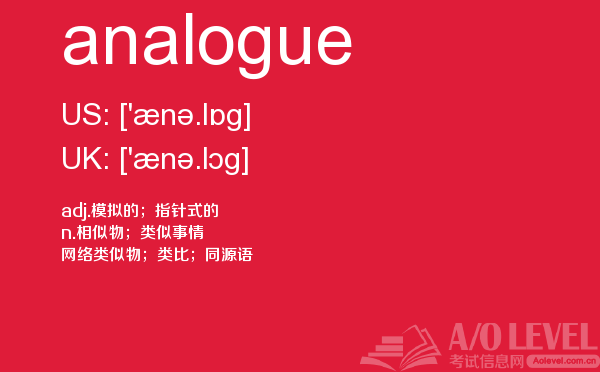 a-level 的考试将由所属的考试委员会分别于每年5-6月和10-11月在全球统一组织,成绩分别在8月和次年2月公布。关于a-level考试时间的具体内容,alevel考试网前面详细介绍过,大家可以查找alevel考试网前面的a-level考试资讯,alevel考试网每天会更新大量的alevel考试资讯,本篇要给大家介绍a-level单词analogue的全面介绍。如果您想了解alevel经济学教材,alevel课程难吗,alevel经济学问题,alevel考试考点等关于a-level考试的相关资讯,请继续浏览并关注课窝a/o-level考试网。