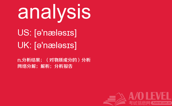 课窝a/o-level考试网上提供了许多信息可以供考生们参考,比如考生需要在此网站报名,打印准考证,或者搜寻与英国a-level考试内容相关的资料等等。考生如果想在短时间内,迅速掌握a-level考试资讯,就需要合理运用此网站的信息。今天带来的是a-level考试词汇之analysis的详细介绍。如果您想了解为什么要考alevel课程,英国alevel官网,上海alevel学校排名,alevel澳洲等关于a-level考试的相关资讯,请继续浏览并关注课窝a/o-level考试网。