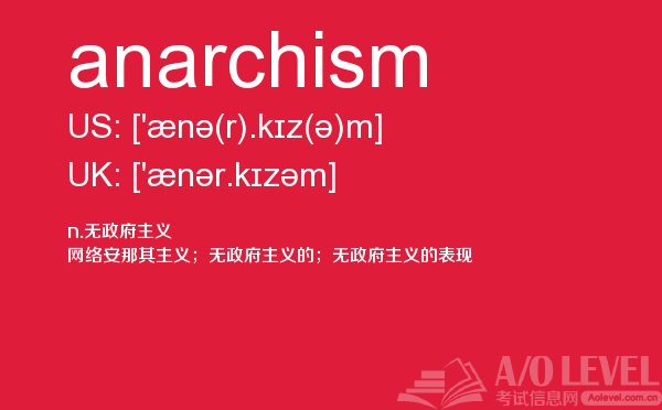 就读于国内学校的学生, 在申请英国学校时需要提交英国a-level考试成绩。很多考生因此英国a-level考试搞得头疼,放松一下,跟着a/o-level考试网来看看英国留学资讯吧!今天课窝a/o-level考试网小编给大家带来a-level考试重点词汇anarchism的全解,对你肯定有帮助。如果您想了解alevel进阶数学分数段,a水准简单吗,新加坡a水准考试难吗,alevel考点等关于a-level考试的相关资讯,请继续浏览并关注课窝a/o-level考试网。