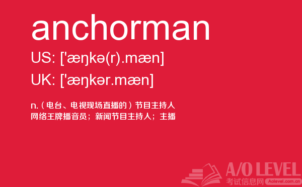 今天课窝a/o-level考试网小编给大家带来alevel考试至关重要的内容a-level单词anchorman的详细介绍。希望大家能够认真的阅读,在备考a-level中会用到,关于a-level考试时间,alevel考试费用等相关问题,可以关注课窝a/o-level考试网。如果您想了解alevel写作,新加坡a水准考试难度,英国alevel排名,a水准考试难不难等关于a-level考试的相关资讯,请继续浏览并关注课窝a/o-level考试网。