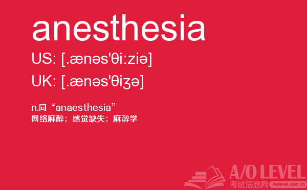现在申请英国院校的中国孩子非常多,几乎每一个学生都在为一种叫做英国a-level的考试而努力着。a/o-level考试网老师为大家解析a-level考试重难点单词anesthesia,大家认真学习,会有帮助。如果您想了解alevel价格,alevel数学教科书,国内alevel学校,alevel报名截止日期等关于a-level考试的相关资讯,请继续浏览并关注课窝a/o-level考试网。