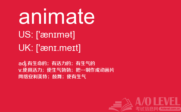 a-level课程证书被几乎所有英语授课的大学作为招收新生的入学标准。 在中国开设a-level课程旨在为中国学生提供进入国外大学的有效途径,具体目标为:培养在国内初高中成绩优秀的学生进入世界顶尖大学;培养在国内初高中成绩中等的学生进入世界一流大学;培养在国内初高中成绩一般的学生考取适合自己的大学。今天alevel考试网小编给大家详细解析a-level考试单词animate。如果您想了解alevel课程可以申请留学新加坡吗,alevel中文书目,alevel词汇量,alevel参考书等关于a-level考试的相关资讯,请继续浏览并关注课窝a/o-level考试网。