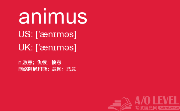 目前,a/olevel逐渐为人所熟知,很多学生都会主动了解alevel考试流程。同时也会抱怨a-level英语题比较难,任务重。那现在我们就放松一下,跟着a/o-level考试网小编来看看a-level考试中要积累的单词animus,认真的学习积累。如果您想了解alevel物理真题,如何成为alevel老师,英国读alevel,为什么要考alevel课程等关于a-level考试的相关资讯,请继续浏览并关注课窝a/o-level考试网。