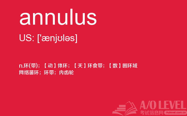 a- level课程一般在中国开设数学、进阶数学(或称高等数学)、物理、计算机学、会计学、商业学、经济学等课程供学生选择。那么关于alevel考生应该选哪些alevel课程呢?以后会给大家详细介绍,今天a/o-level考试网主要给大家全面介绍a-level词汇中的annulus单词。如果您想了解南京最好的alevel培训机构,alevel生物,alevel成绩查询时间,新加坡o水准a1多少分等关于a-level考试的相关资讯,请继续浏览并关注课窝a/o-level考试网。