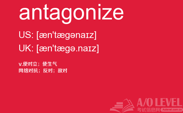 英国a-level考试报名费很好解决,那怎样才能达到a-level考试词汇量要求呢?别再纠结于a-level考试分数要求了,今天我们来一起看看a/o-level考试网今天带给你的a-level单词antagonize的讲解。如果您想了解英国大学alevel要求,alevel考试指南,新加坡最好的a水准预科学校,alevel化学教材电子版等关于a-level考试的相关资讯,请继续浏览并关注课窝a/o-level考试网。