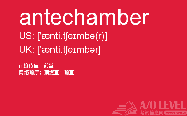 a-level考试报名须知是必须要懂得,这样在面对英国a-level入学考试的时候自己也知道应该怎么面对。为了提高考生们的a-level模拟考卷成绩,a/o-level考试网会经常给大家带来a-level考试资讯,下面就是今天课窝a/o-level考试网小编给大家讲解关于a-level考试词汇antechamber怎么用。如果您想了解墨尔本大学alevel要求,alevel进阶数学内容,alevel自学考几门,暑期alevel等关于a-level考试的相关资讯,请继续浏览并关注课窝a/o-level考试网。