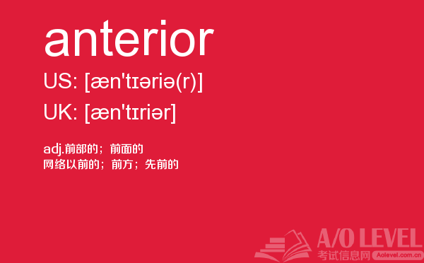 英国、加拿大、爱尔兰、澳大利亚、新西兰、新加坡等英语国家没有统一的大学入学标准,虽然它们都认可a-level证书,但是各所大学、各个专业对学生学过哪几门a-level课程以及成绩都有不同的要求。所以怎样选择课程并没有一个唯一的答案。对于如何选课的问题要根据具体情况而定。这些在你的a-level考试中都不是重要的,重要的是a-level成绩,a-level成绩取决于a-level词汇量,那么今天小编给大家带来a-level考试重点词汇anterior的全面解析。如果您想了解alevel考试卷,alevel课程每科评分,a水准考试时间,美国有alevel课程吗等关于a-level考试的相关资讯,请继续浏览并关注课窝a/o-level考试网。