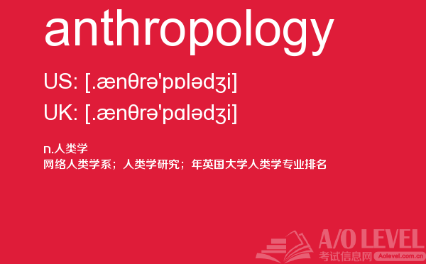 对于a-level考试,我们一再强调要加强a-level考试真题实战,多做英国a-level考试真题。放松一下,跟着a/o-level考试网来积累一下a-level考试中你会用到的单词anthropology,对你的a-level考试会有很大的帮助。如果您想了解alevel双语教材,alevel考场,alevel化学还原氧化知识点,新加坡剑桥a水准考试等关于a-level考试的相关资讯,请继续浏览并关注课窝a/o-level考试网。