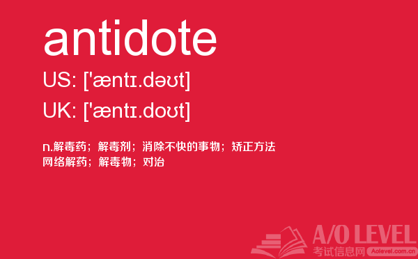 英国以其高质量的教学闻名于世,如果你还在思考a-level考试值不值得考?近几年的英国留学a-level考试的热潮足以证明一切!课窝a/o-level考试网会给大家带来a-level考试真题,a-level考试如何复习?等所有有关的a-level考试资讯。课窝a/o-level考试网今天带来a-level考试中很重要的单词antidote的详细解析,会对你有帮助。如果您想了解alevel考试网,alevel物理,alevel选课,alevel教材等关于a-level考试的相关资讯,请继续浏览并关注课窝a/o-level考试网。