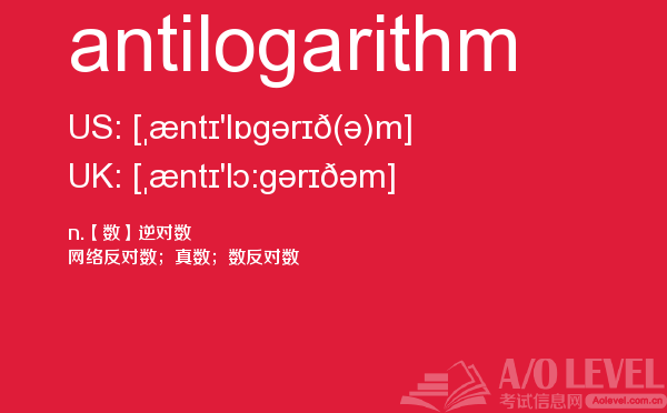 目前,a/olevel逐渐为人所熟知,很多学生都会主动了解alevel考试流程。同时也会抱怨a-level英语题比较难,任务重。那现在我们就放松一下,跟着a/o-level考试网小编来看看a-level考试中要积累的单词antilogarithm,认真的学习积累。如果您想了解alevel时间,alevel考试报名费,国内学alevel要多少钱,alevel化学等关于a-level考试的相关资讯,请继续浏览并关注课窝a/o-level考试网。