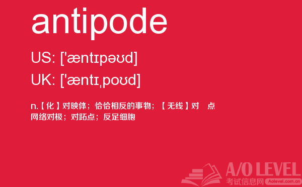 在a-level备考的过程中,想要冲刺到a-level写作的高分,相信大家都应该会知道,除了需要掌握a-level写作的一些技巧之外,优化文章中的词汇和句型也是冲刺高分的关键所在。也就是说,只有充分掌握了语法知识,才能让我们的的文章更为丰富形象。除了a-level写作,在a-level其他方面同学们也需要了解,下面课窝a/o-level考试网小编给大家带来a-level单词antipode的介绍。如果您想了解alevel考试的考生年龄上限是多少,alevel国际学校,alevel剑桥,alevel物理讲义等关于a-level考试的相关资讯,请继续浏览并关注课窝a/o-level考试网。