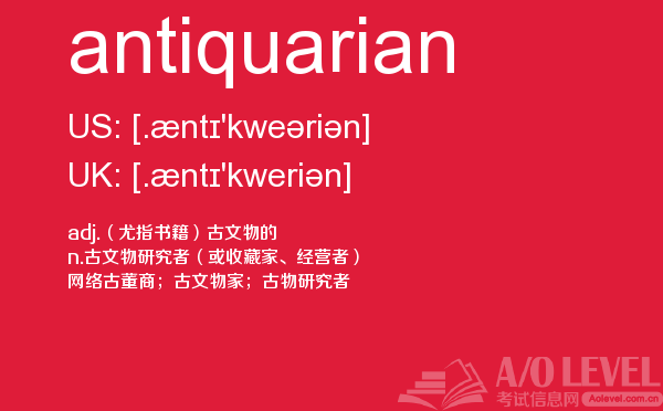 英国以其高质量的教学闻名于世,如果你还在思考a-level考试值不值得考?近几年的英国留学a-level考试的热潮足以证明一切!课窝a/o-level考试网会给大家带来a-level考试真题,a-level考试如何复习?等所有有关的a-level考试资讯。课窝a/o-level考试网今天带来a-level考试中很重要的单词antiquarian的详细解析,会对你有帮助。如果您想了解墨尔本大学alevel要求,alevel大学预录取时间,新加坡国alevel,英国alevel好学吗等关于a-level考试的相关资讯,请继续浏览并关注课窝a/o-level考试网。